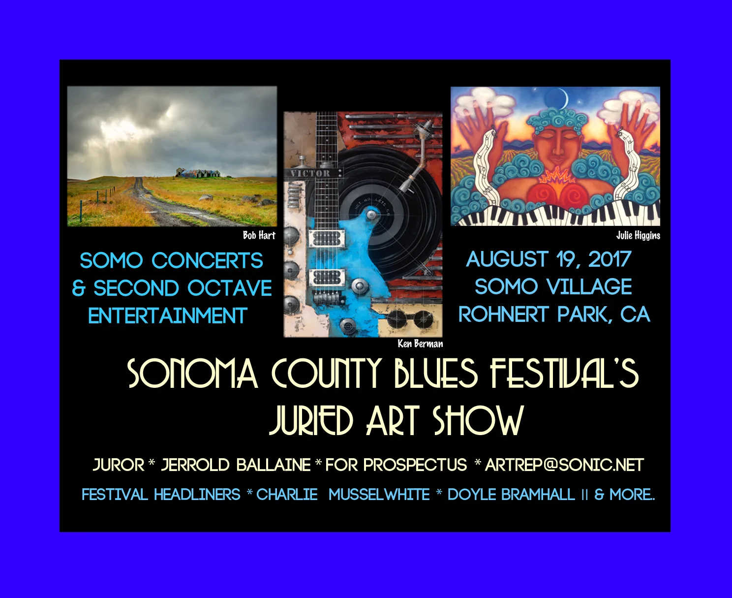 SOMO Concerts invites you to a day long pop-up festival filled with nationally acclaimed Sonoma grown blues and a beautifully curated fine art gallery (including artwork by Jonah Ward). Patrons will be delighted by the main stage featuring legendary local living bluesman Charlie Musselwhite, vocalist, guitarist, composer, producer and Santa Rosa High School Alum Doyle Bramhall II, Award Winning Bay area Blues vocalist Ms Taylor P Collins and Vallejo-based gospel sensations The Sons of The Soul Revivers. In the Redwood Grove our second stage welcomes “Electric Chicago Blues from Muddy to Buddy” with Sonoma County’s stalwart The Blues Defenders and Special Guest veteran guitarists Levi Lloyd and Volker Strifler. Kathleen McCallum, a long-time North Bay artist, arts advocate and event producer has joined the Sonoma County Blues Festival as the Director of this year’s new Juried Art Show.