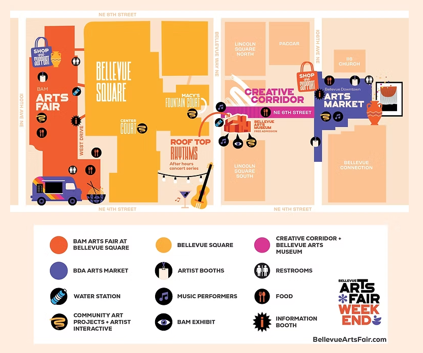 Bellevue Arts Fair Weekend is a premier annual event celebrating the arts and showcasing the creative talents of artists from around the country. More than 350 artists will exhibit and sell handcrafted works across 20+ mediums, accompanied by live performances, food trucks, and hands-on programming.